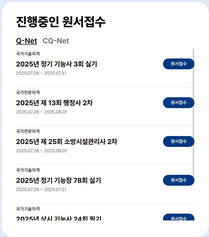 큐넷 원서접수 시간 방법 2025